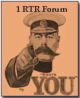 This is the site for comrades and former comrades of the 1st Royal Tank Regiment and attached personnel and families. This is the home page so please place a book mark on your computer for easy reference. You can access the Forum directly via the Kitchener poster. Click on it. But you must be 1 RTR and a forum member to read all the posts. To continue onto the site, press the Next button below. Paul Ramsay is the brains behind all that those were the Scarborough Reunions and is currently Secretary of the Branch. If you paid into the "days pay scheme" whilst serving, then apply to join the RTR Association free of charge if you haven't already done so. The Scarborough Branch of the 1 RTR Association is the biggest in the country by all accounts. This site nor its adjoining forum are in any way, associated with RTR or RTRA, being privately owned. Mike Kemble. Site Owner. |